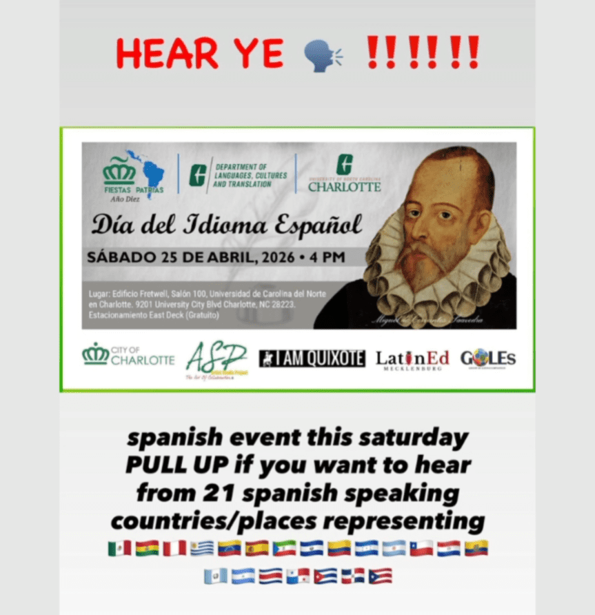 This October 6, 2025, from 6:00 PM to 7:30 PM, the LHFS caucus will be attending the “Noche de Esperanza,” an event spearheaded by the Dancing Association for Latine Expression (DALE). The event is taking place in UNC Charlotte’s main campus, in the CONE building, Lucas Room.